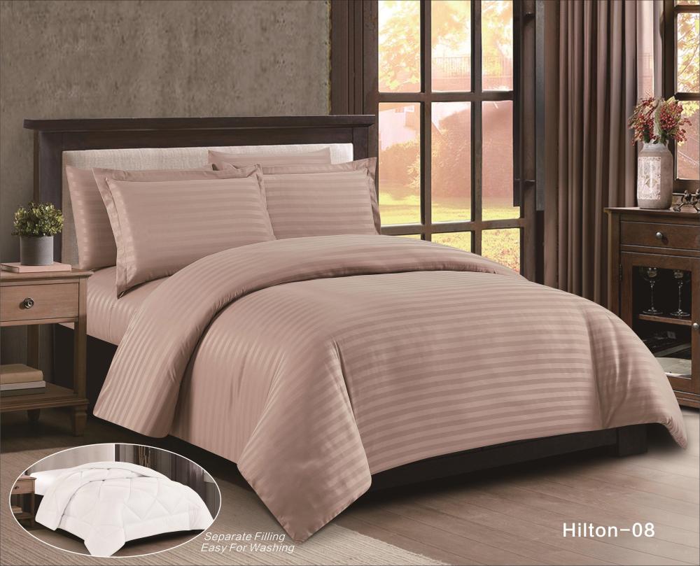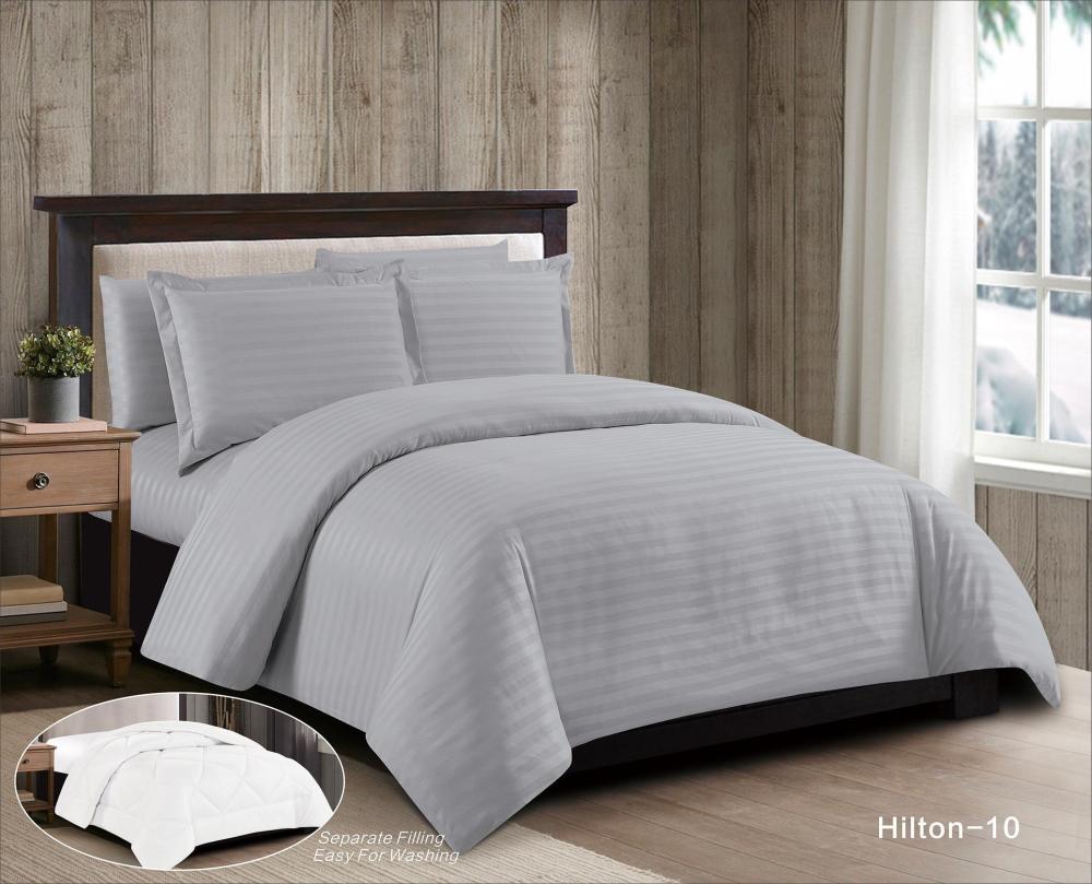 استمتع بتجربة نوم فاخرة كل ليلة مع المفرش الفندقي المخطط – هيلتون، المصمم ليمنحك نفس الإحساس الراقي الذي تجده في أرقى الفنادق العالمية. بتصميم مخطط أنيق وخامة فاخرة، يضيف لمسة من النقاء والرقي على سريرك.