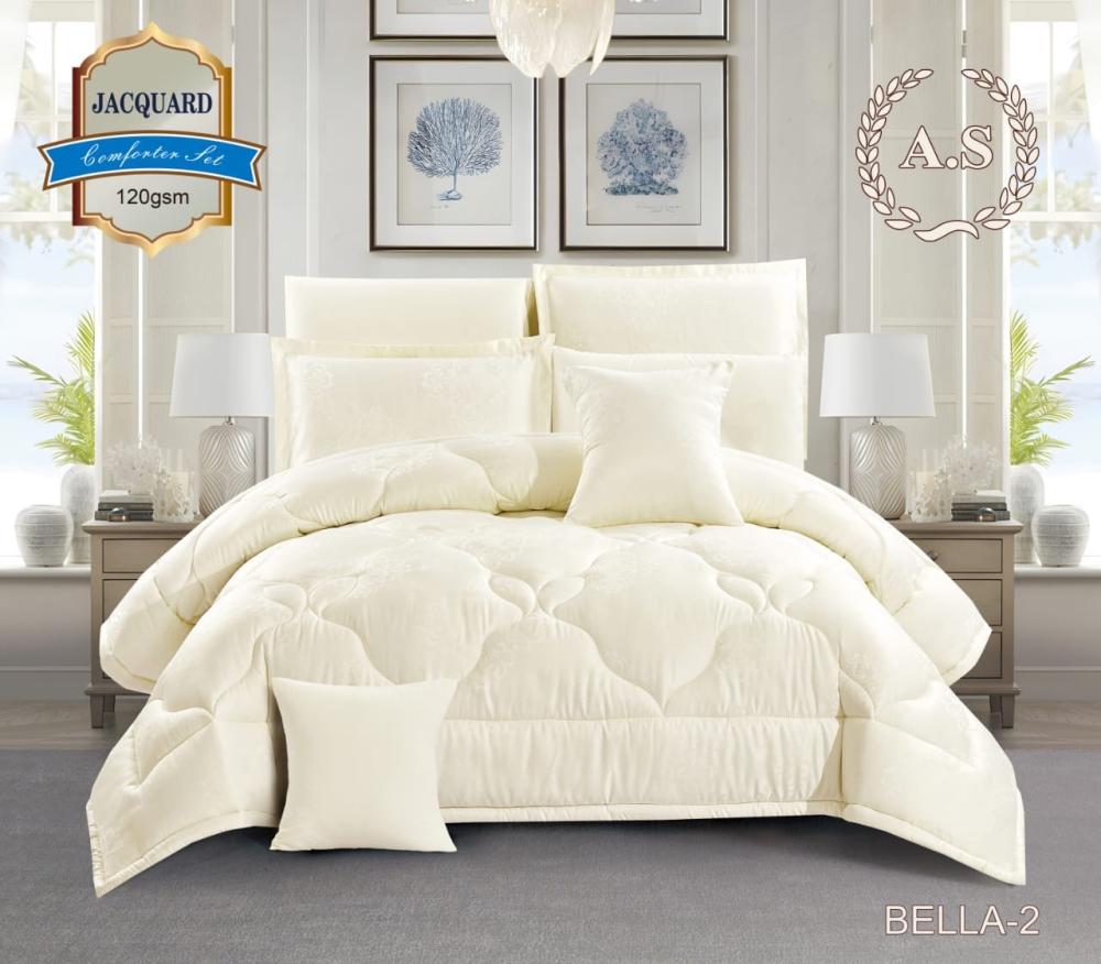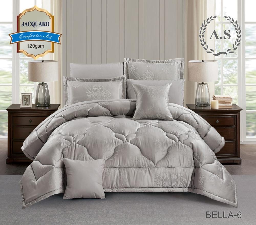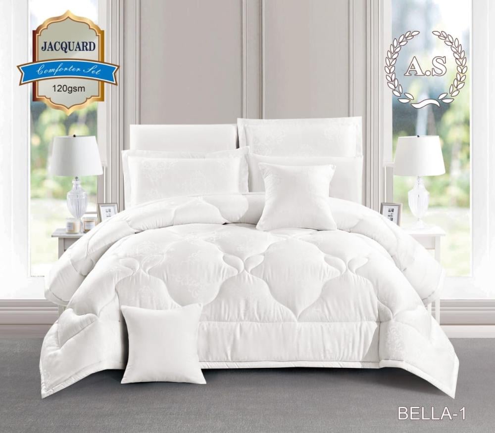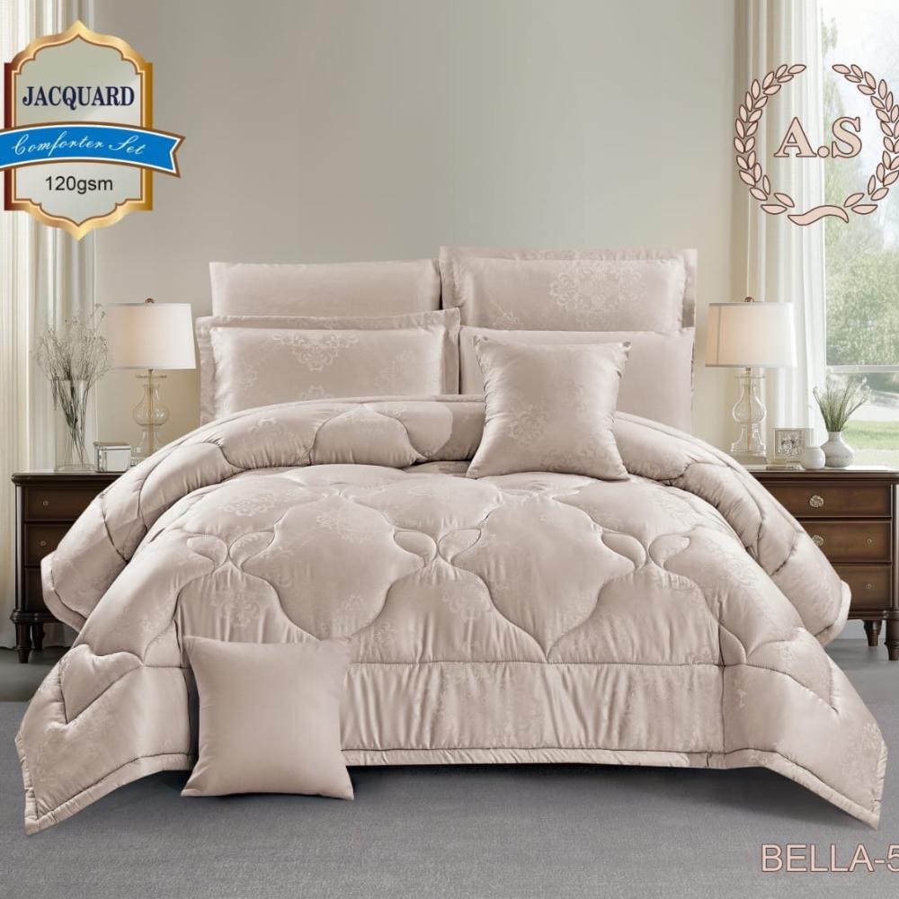 حوّل غرفة نومك إلى مساحة من الفخامة والراحة مع طقم اللحاف الفاخر Jacquard Comforter Set بتصميمه الراقي وجودته العالية (). يتميز هذا الطقم بنقشة جاكار أنيقة تضيف لمسة كلاسيكية ولمعانًا هادئًا ينعكس على ديكور الغرفة ليمنحك إحساسًا بالترف والهدوء في آنٍ واحد.